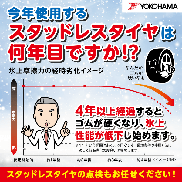 今お使いのスタッドレスタイヤ交換時期なのか判断できない方は、当店にお気軽にご相談ください♪