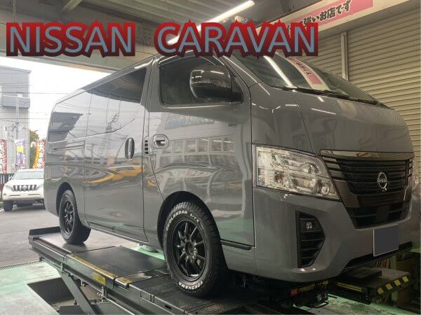 本日は「ニッサン キャラバン」タイヤ・ホイールセットの装着でご来店!