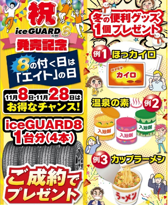今月8日、18日、28日にヨコハマアイスガード8を4本購入で