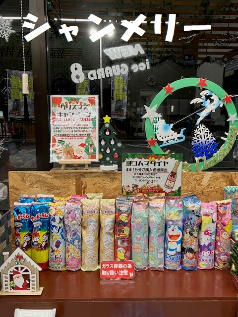 期間中に当店でタイヤ4本1台分お買い上げのお客様で、お子様連れの方限定でお子様にシャンメリー1本を先着20名様にプレゼント!