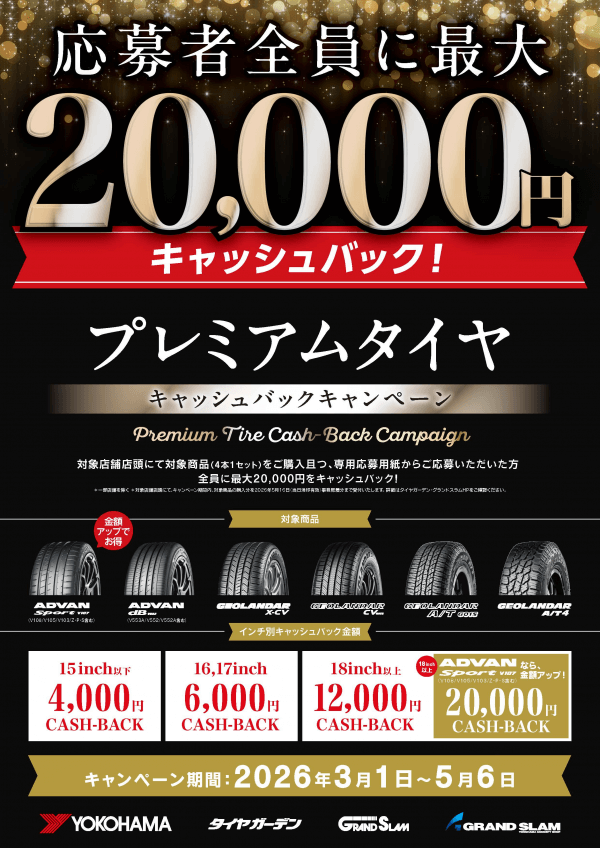 さて、当店ではプレミアムタイヤキャッシュバックキャンペーンが絶賛開催中です!!