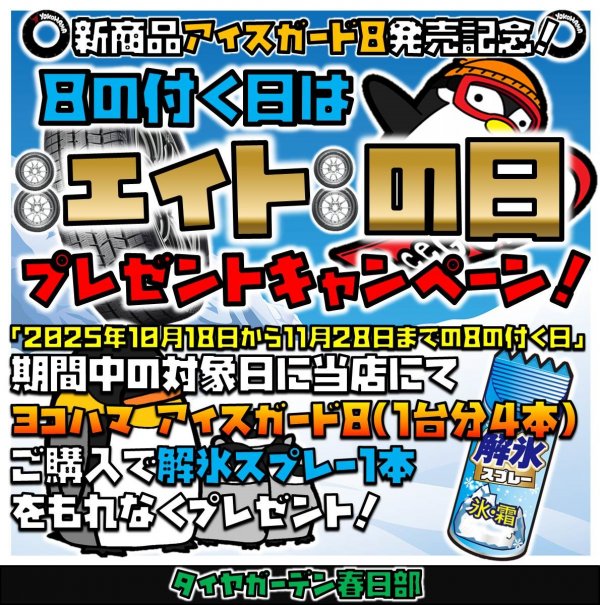 タイヤガーデン春日部店では8の付く日は『エイトの日』キャンペーンを開催!