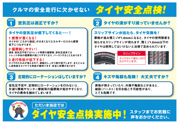 4月になりノーマルタイヤへと履き替える方が多くなると思います。