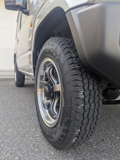 本日の取付レポートは、ジムニーにGEOLANDAR A/T4をお取り付けしました! A/T4は従来のA/T G015に比べ、オン・オフロード性能をさらに進化させたオールテレーンタイヤでございます。
