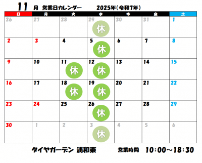11月営業日のお知らせです。