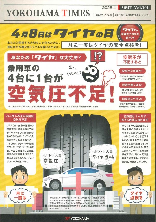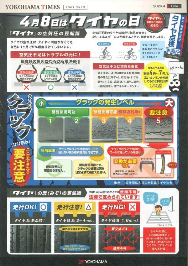 4月8日は『タイヤの日』タイヤ無料安全点検実施中!