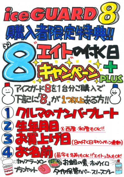 エイトの日プラスキャンペーンをおこないます(^^♪