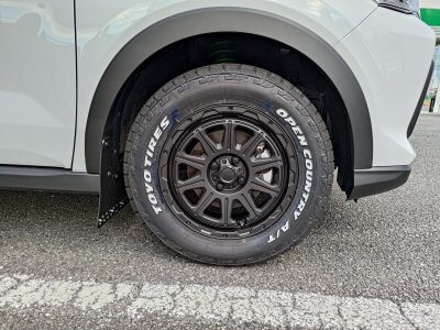 車高調でリフトアップし、純正よりもサイズアップしたタイヤをお取り付けいたしましたので、よりワイルドな見た目になりました!