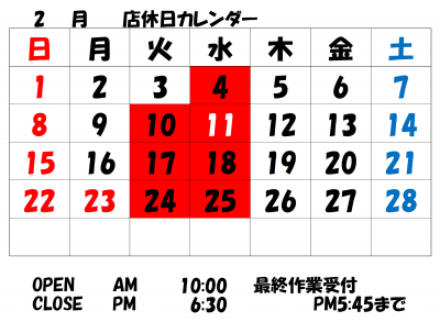 毎週水曜日、第2第3火曜日の定休日は通常通りですが、